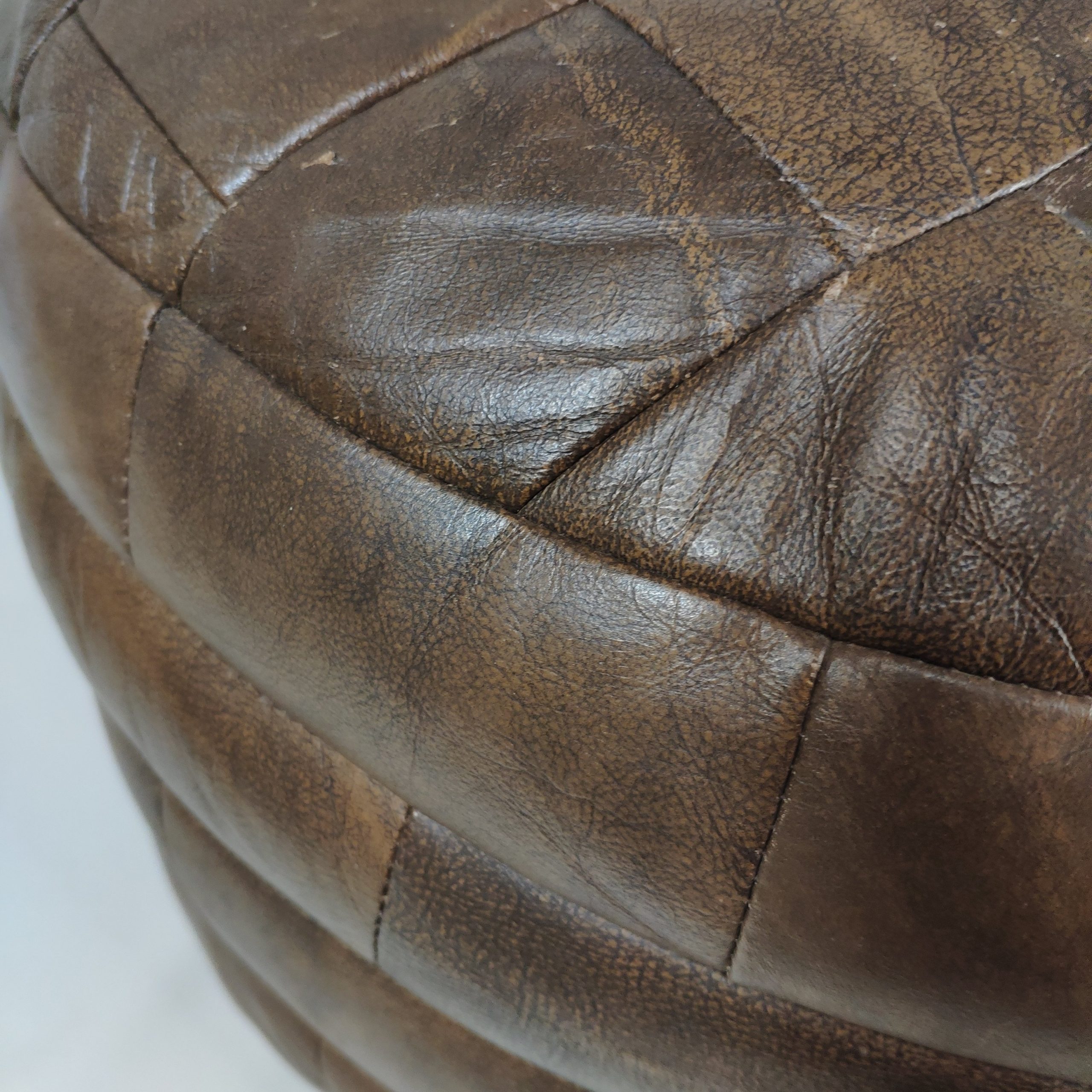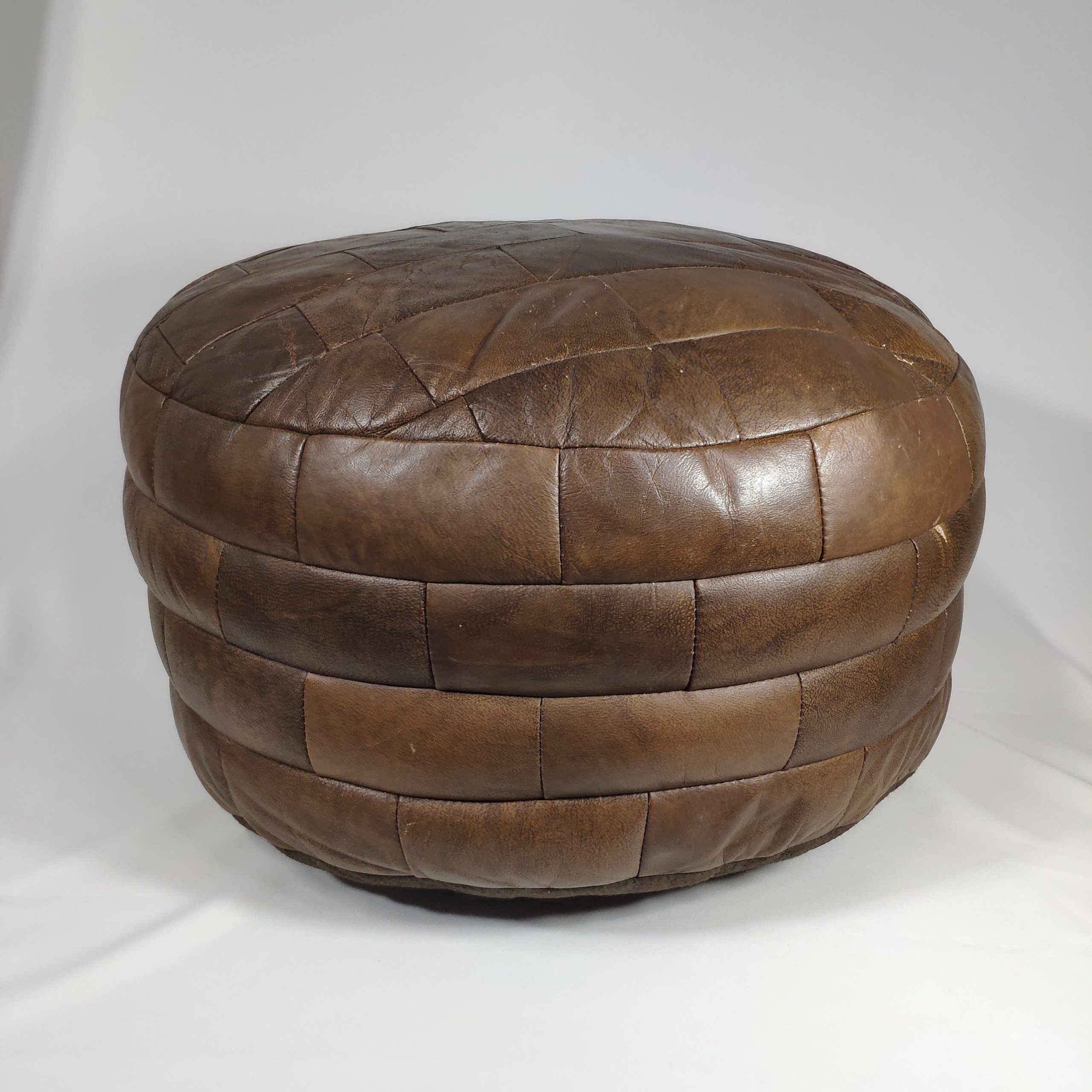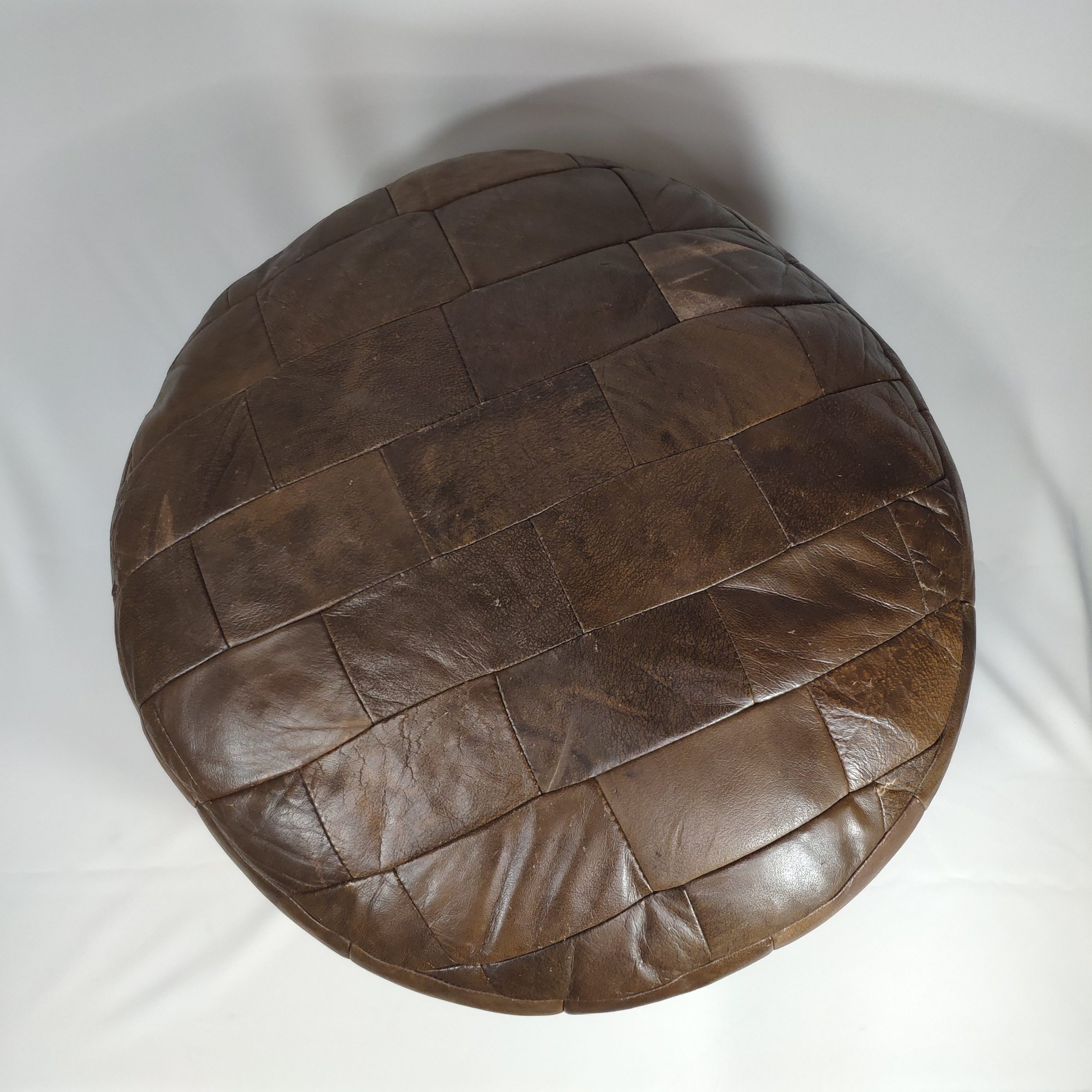 Déjate seducir por la comodidad y el encanto del puff redondo de piel. Este bonito puff, confeccionado con trozos de piel auténtica en muy buen estado de conservación, aportará un toque ideal de confort y estilo a tu espacio.
