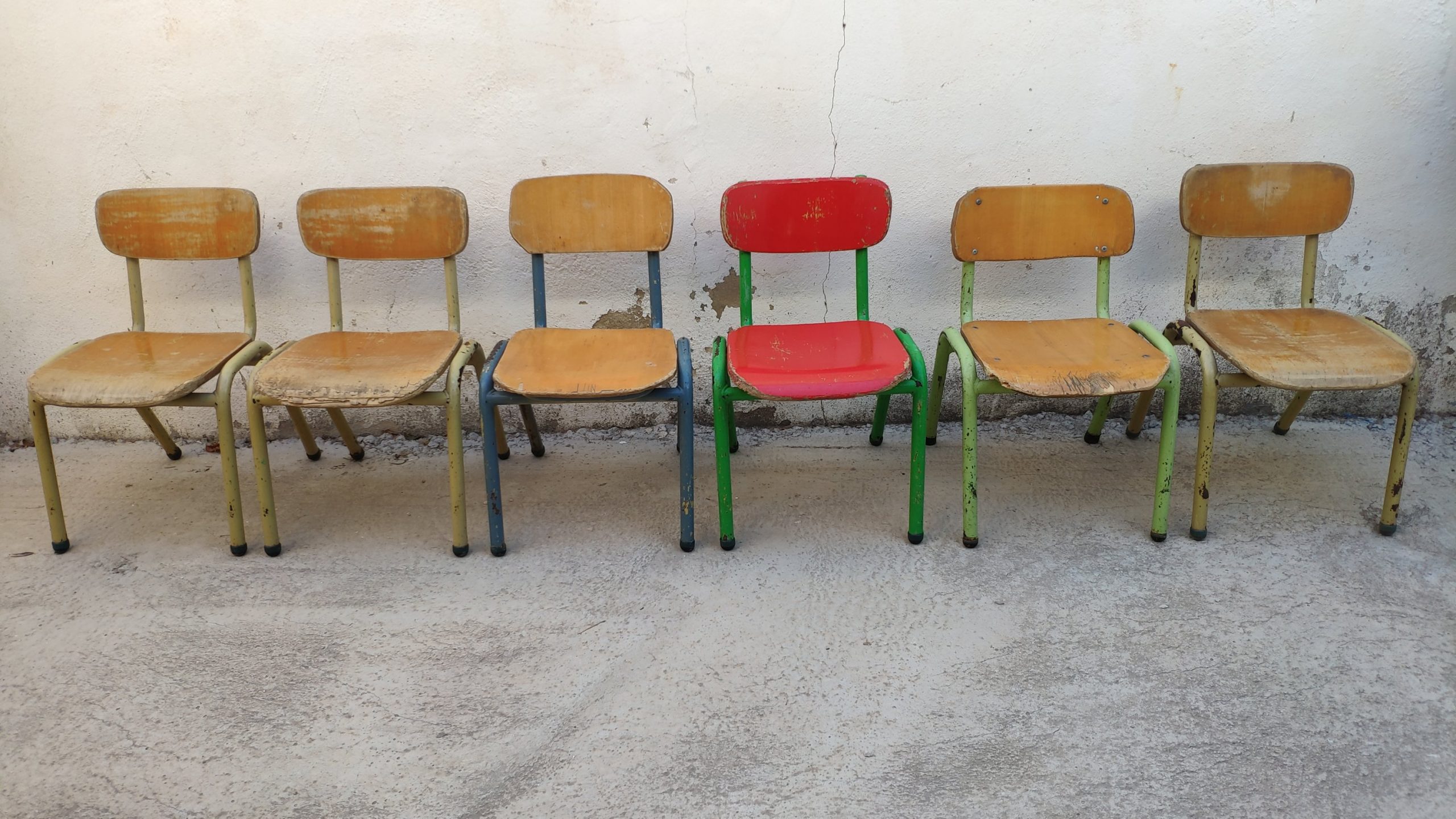 Bonitas sillas de colegio o guardería antiguas, originales.