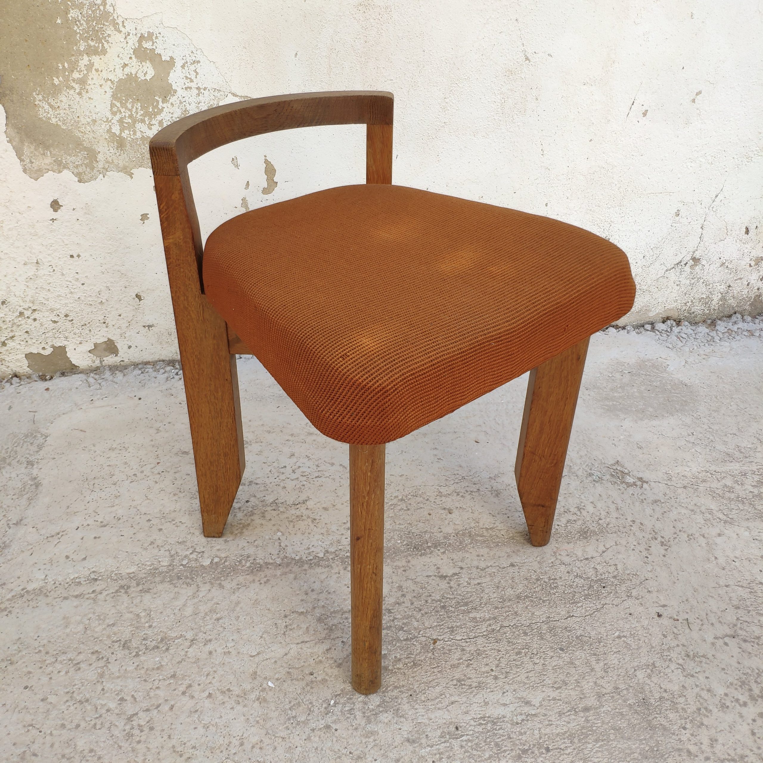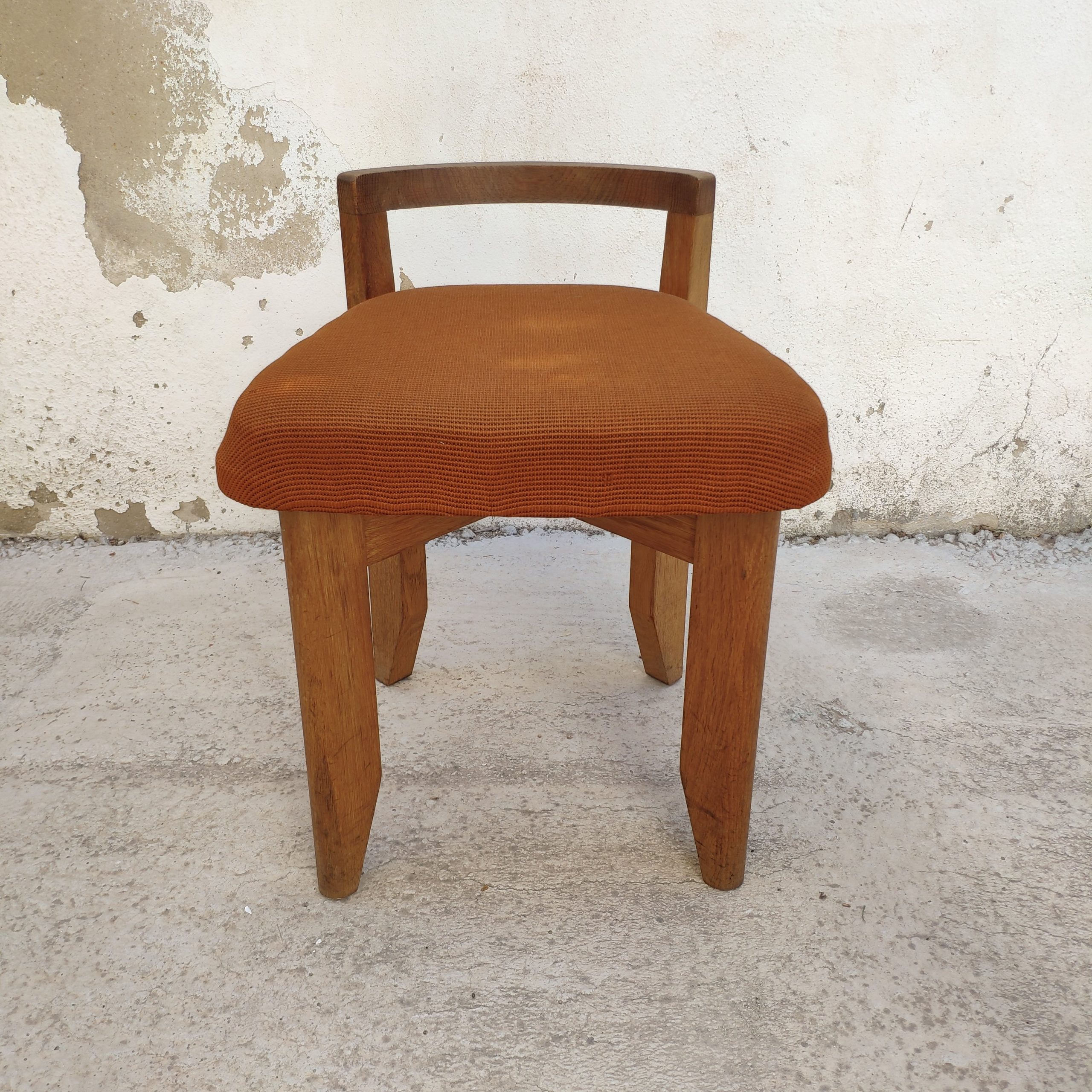 Sumérgete en la elegancia y la solidez del taburete “Rubercrin” de Guillerme et Chambron, fabricado en madera de roble y conservando su tapizado original, esta joya vintage procede de Francia de la década de 1960. Diseñado por el dúo de talentosos diseñadores franceses Guillerme y Chambron, este taburete destaca por su estética esculpida y robusta.