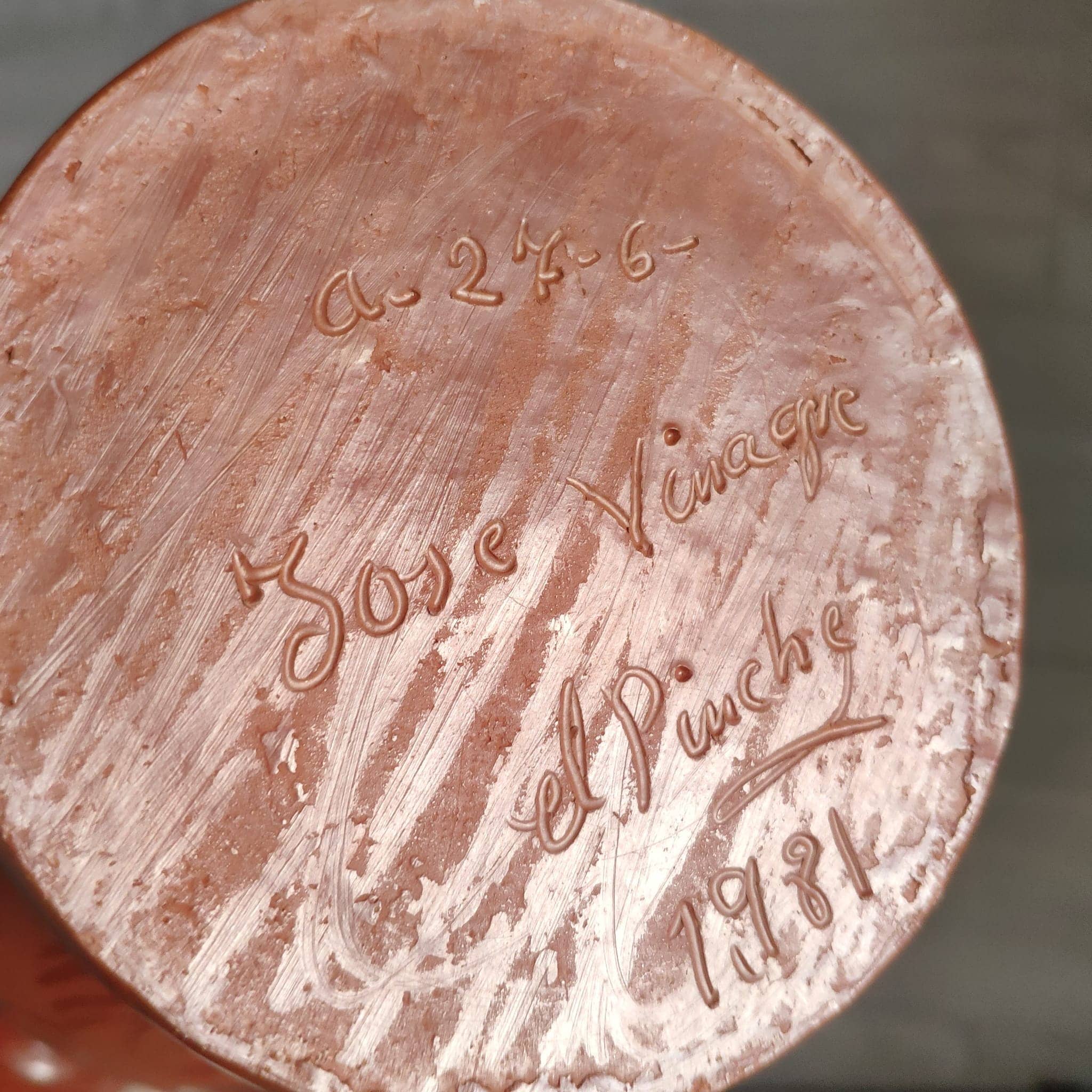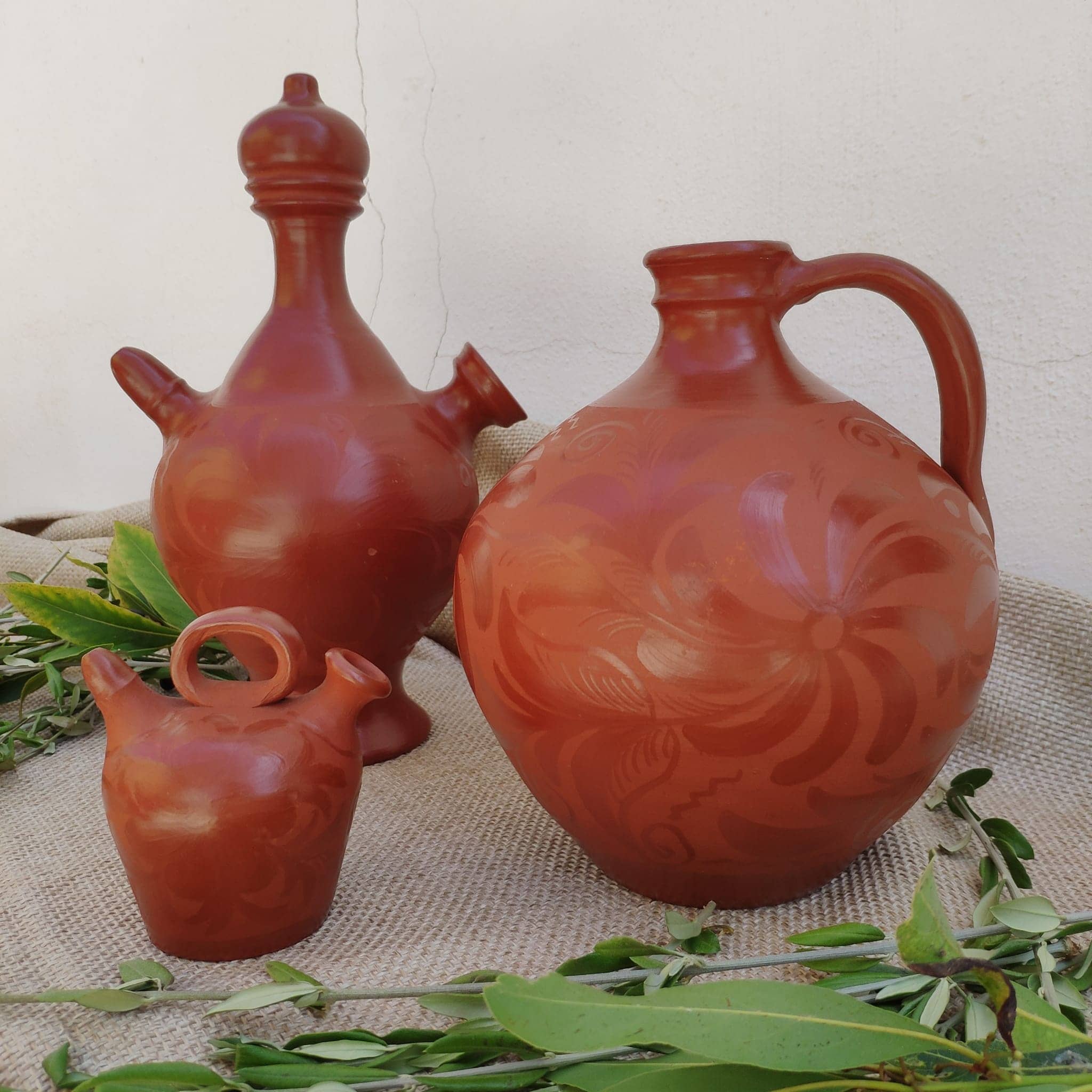 Conjunto de tres piezas hechas a mano por José Vinagre “el pinche” realizadas en 1981 en barro cocido y con motivos florales (todas las piezas están datadas y firmadas por él), siendo este uno de los maestros y máximos exponentes en el mundo de la alfarería, natural de Salvatierra de los Barros.