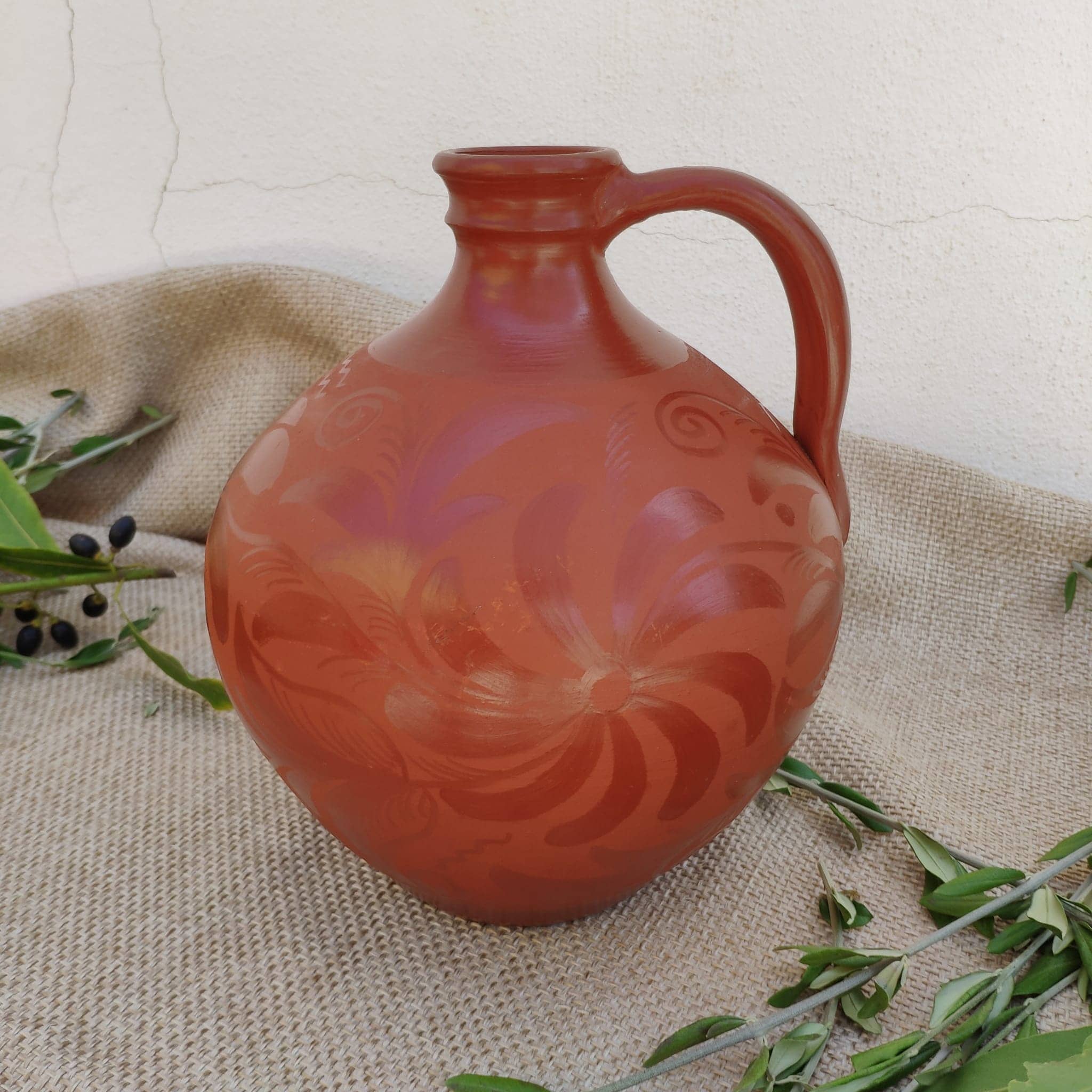 – Botijo: Alto 33 cm / Circunferencia 54 cm / Pie 10 cm – Peso: 1,20 Kg