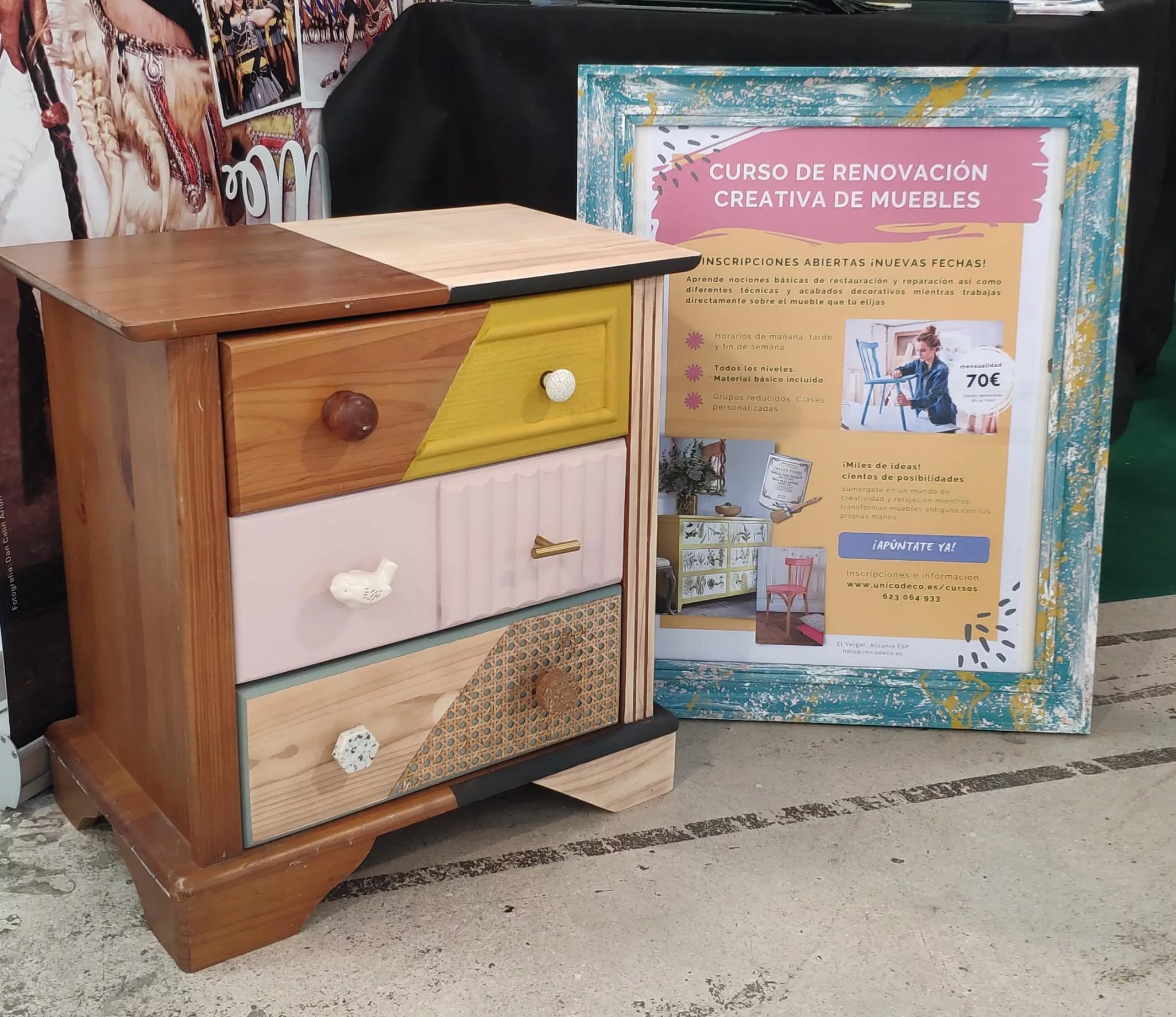 La gran novedad de la feria es que presentamos nuestro nuevo curso de “Renovaciรณn creativa de muebles”, en el que te enseรฑaremos a recuperar y renovar todos esos muebles que tienes olvidados, ยฟte animas a hacerlo real?